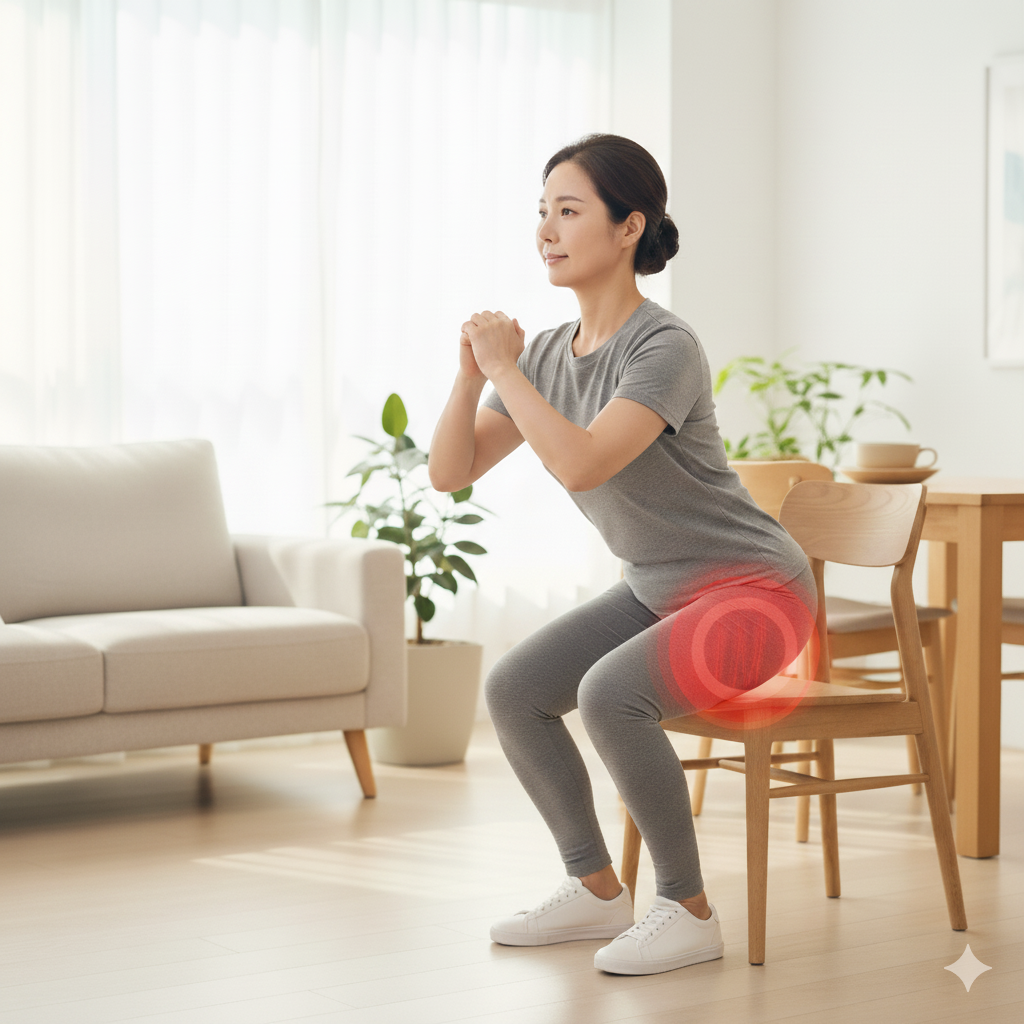 - 힘들게 스쿼트 하지 마세요: 의자를 이용하세요. 앉았다가 완전히 일어서지 않고, 살짝 엉덩이만 닿을 듯 말 듯 반복합니다. 하루 10분만 투자해도 허벅지에 불이 붙는 느낌이 들 겁니다.